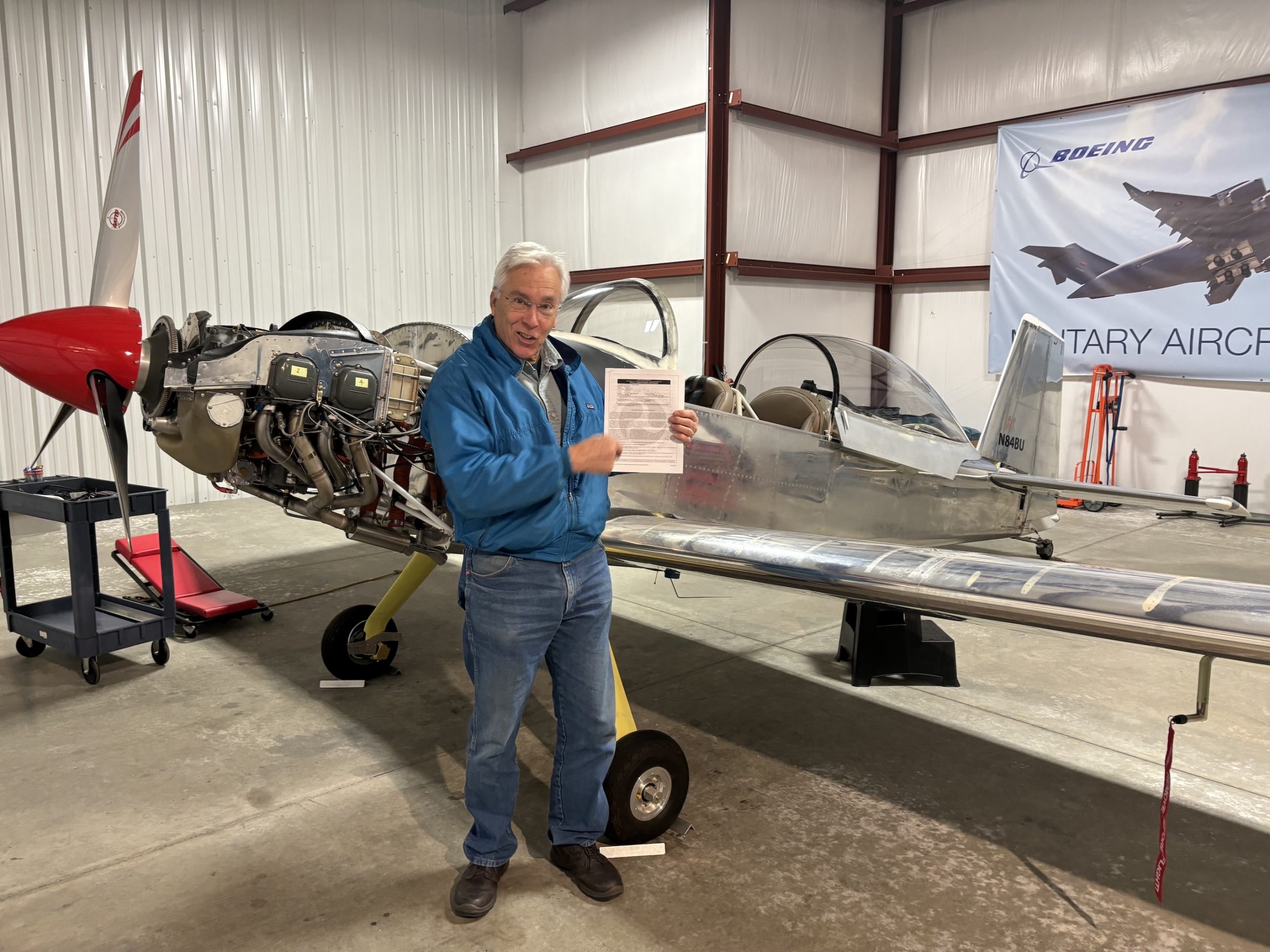Mark Burns received the airworthiness certificate for his RV-8 on October 30, 2024. It’s a beautiful airplane. Bill Calvert also lent his expertise, experience and labor to the build.