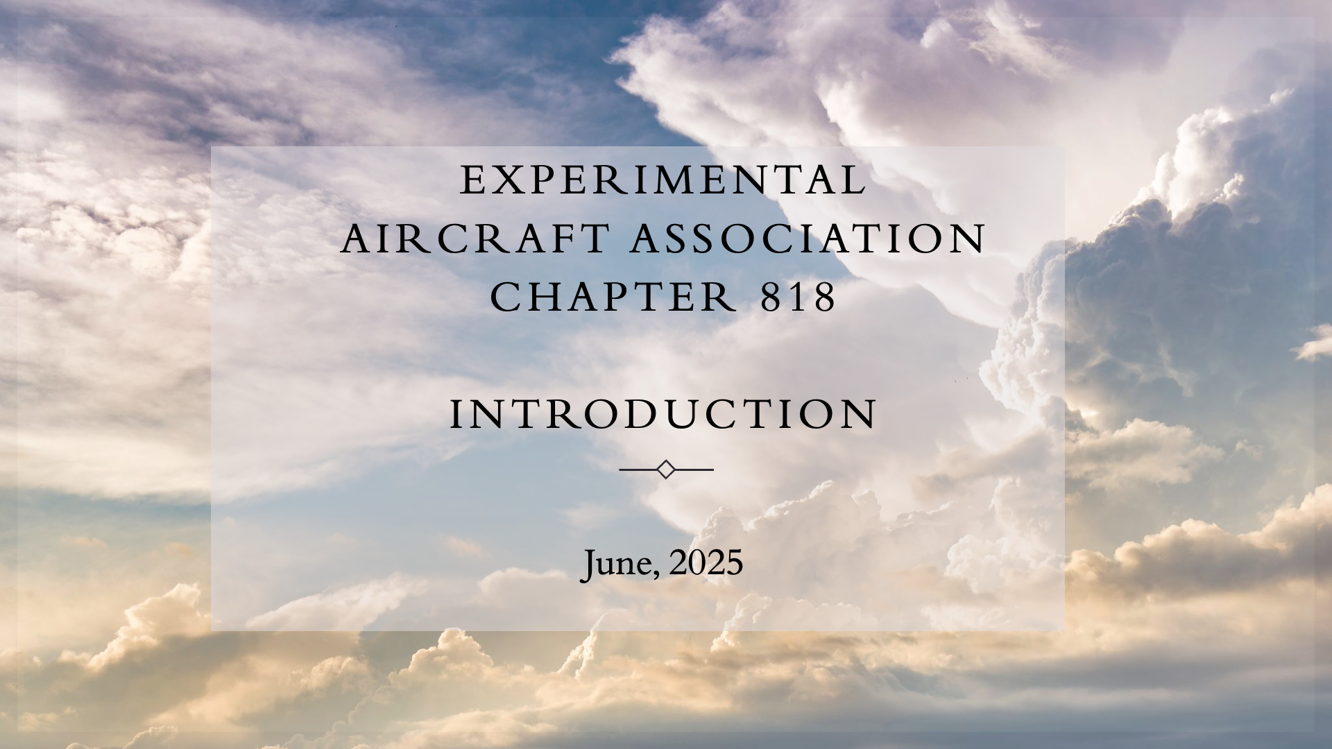 This slide deck provides an overview of the Experimental Aircraft Association national organization and Chapter 818’s history, members and programs. Click HERE to view the presentation online. There’s also a downloadable PowerPoint version HERE.