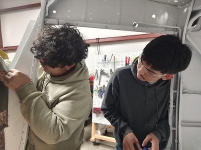 The program gained a new participant, Titus, who was assisted by Zadoc to craft his name tag. Jonathon and Carter researched a bolt that was needed. The rudder pedal was linked to the steering yoke. Time was taken to explain the function of a solenoid.