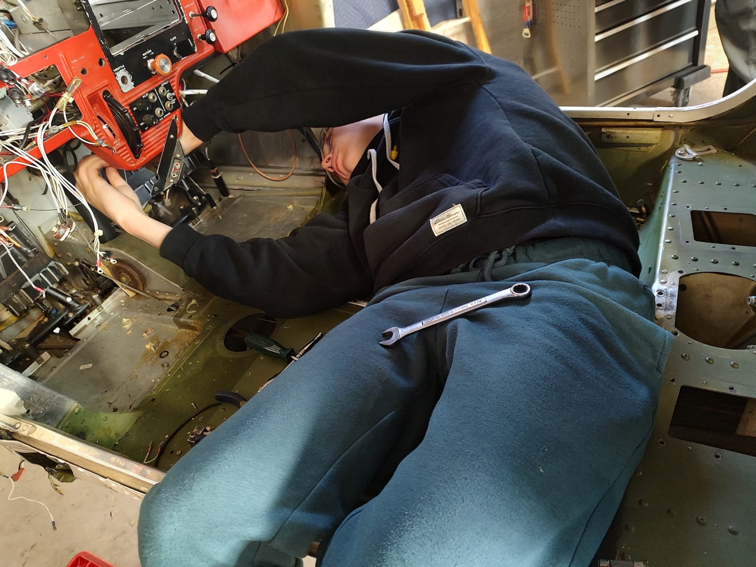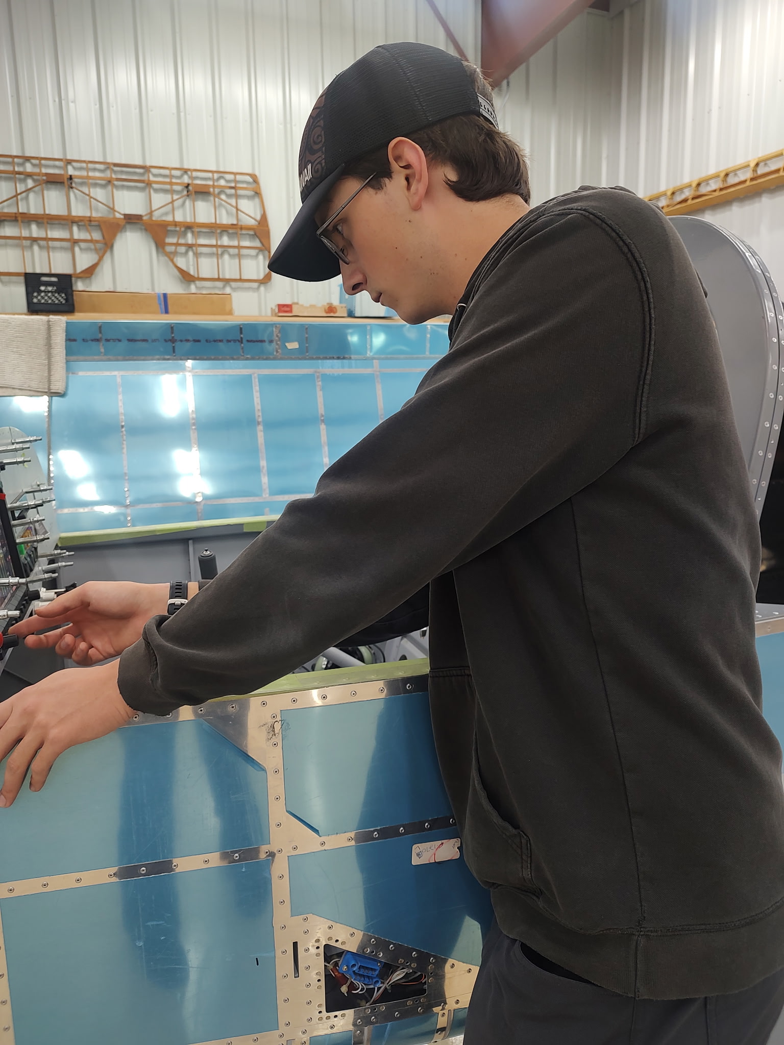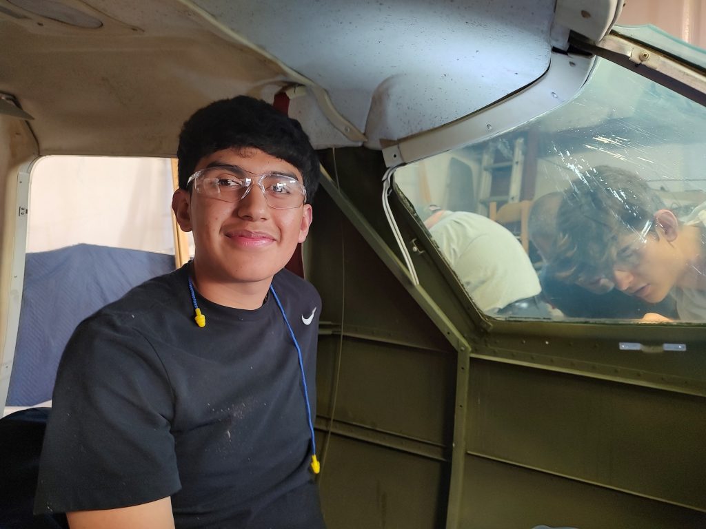 The RV has wings Moving on to the Cessna, Eli identified what is needed on the instrument panel and began to create a template that will be used to make a new one. Etienne installed an antenna.