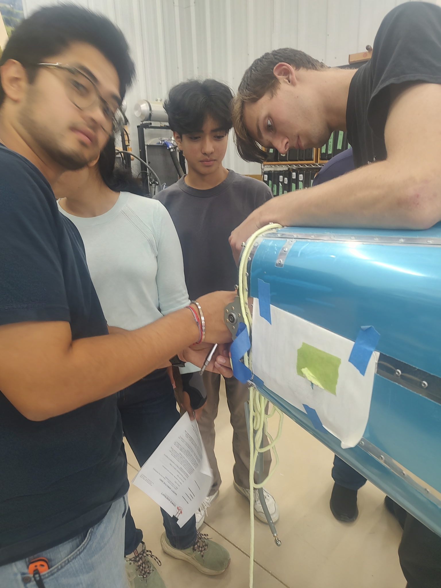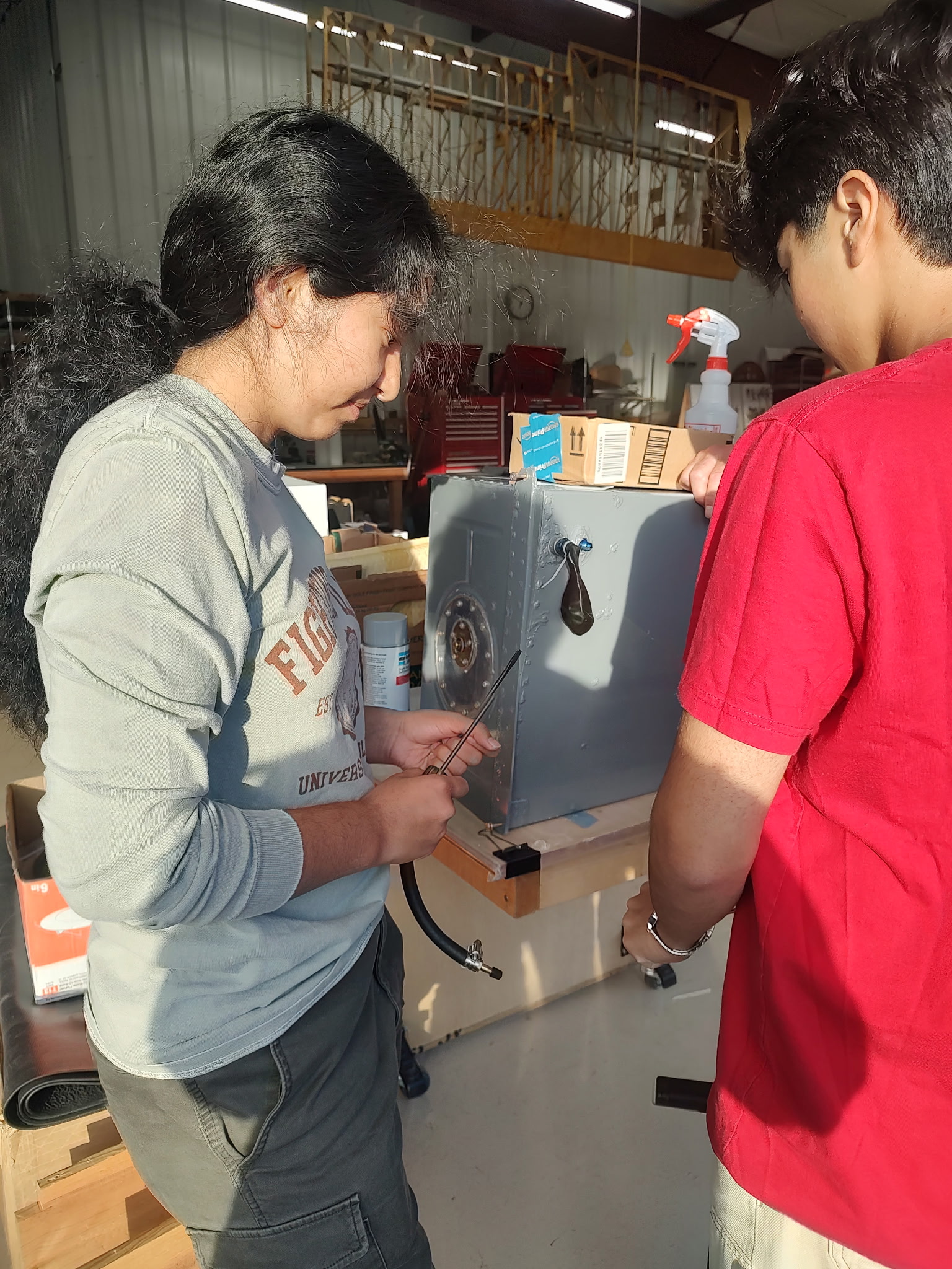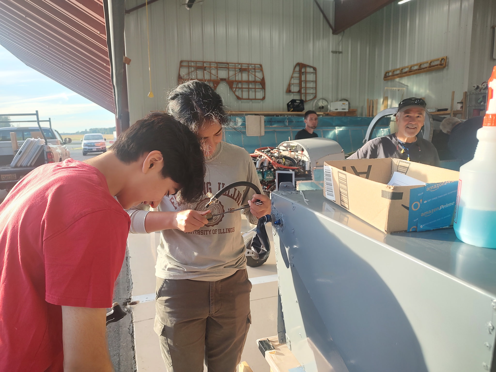 The purchase of the RV12 (kit) has generated excitement in Hangar 400. The completion of this project and its sale will further support the SkY Flight program. The Service Bulletin was reviewed by Carter and Jay. Testing the fuel tank for links was conducted by Priya and Akshay.